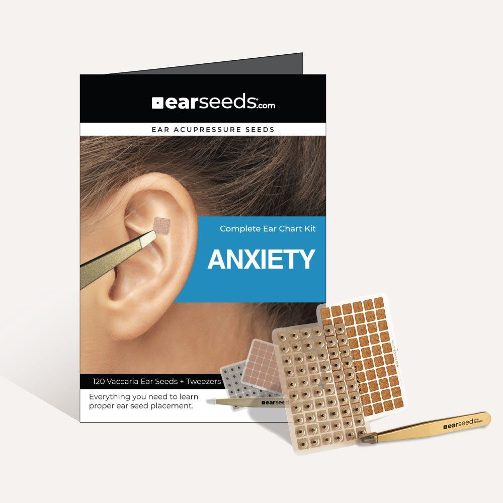 A comprehensive kit that includes 120 vaccaria seeds + illustrated protocols for women & men. NOTE: Tan tape contains latex. Small black seeds from the Vaccaria plant are secured on the ear with a piece of adhesive tape over specific acupressure points. The seeds stimulate the point by exerting mild pressure.