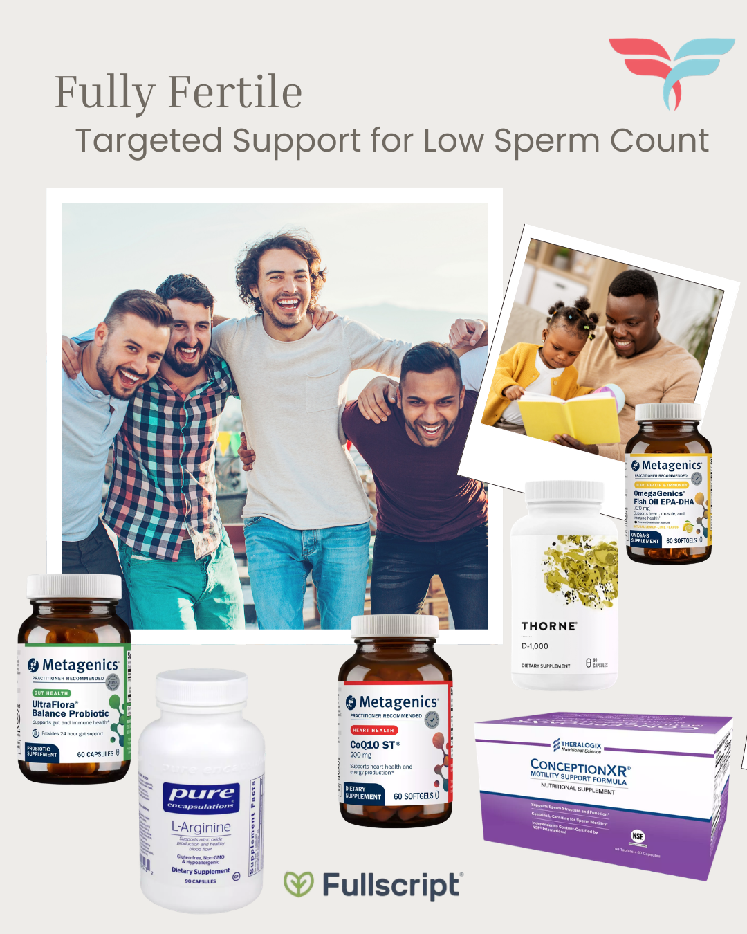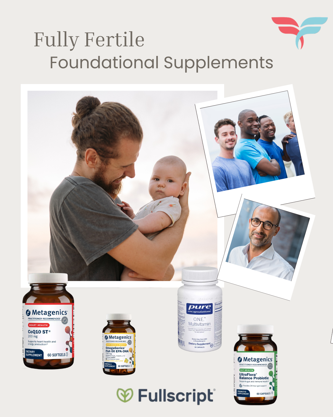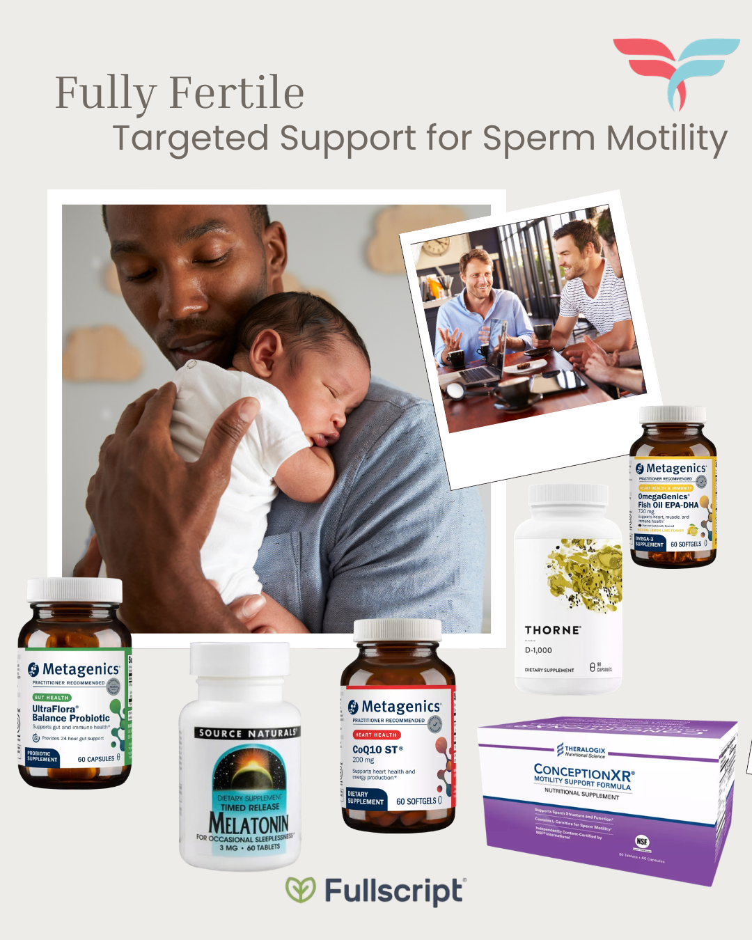 Did you know that sperm regenerate approximately every 74 days? Changes made today can have a positive impact on your future fertility. Our expertly curated recommendations make it easy for men to improve the quality of their sperm and overall health in just a few short months. Simply choose the bundle that meets your needs, create your Fullscript account, and go! Buy the whole bundle or pick products individually. Your items ship fast, directly from Fullscript. 25% discount applied at checkout.