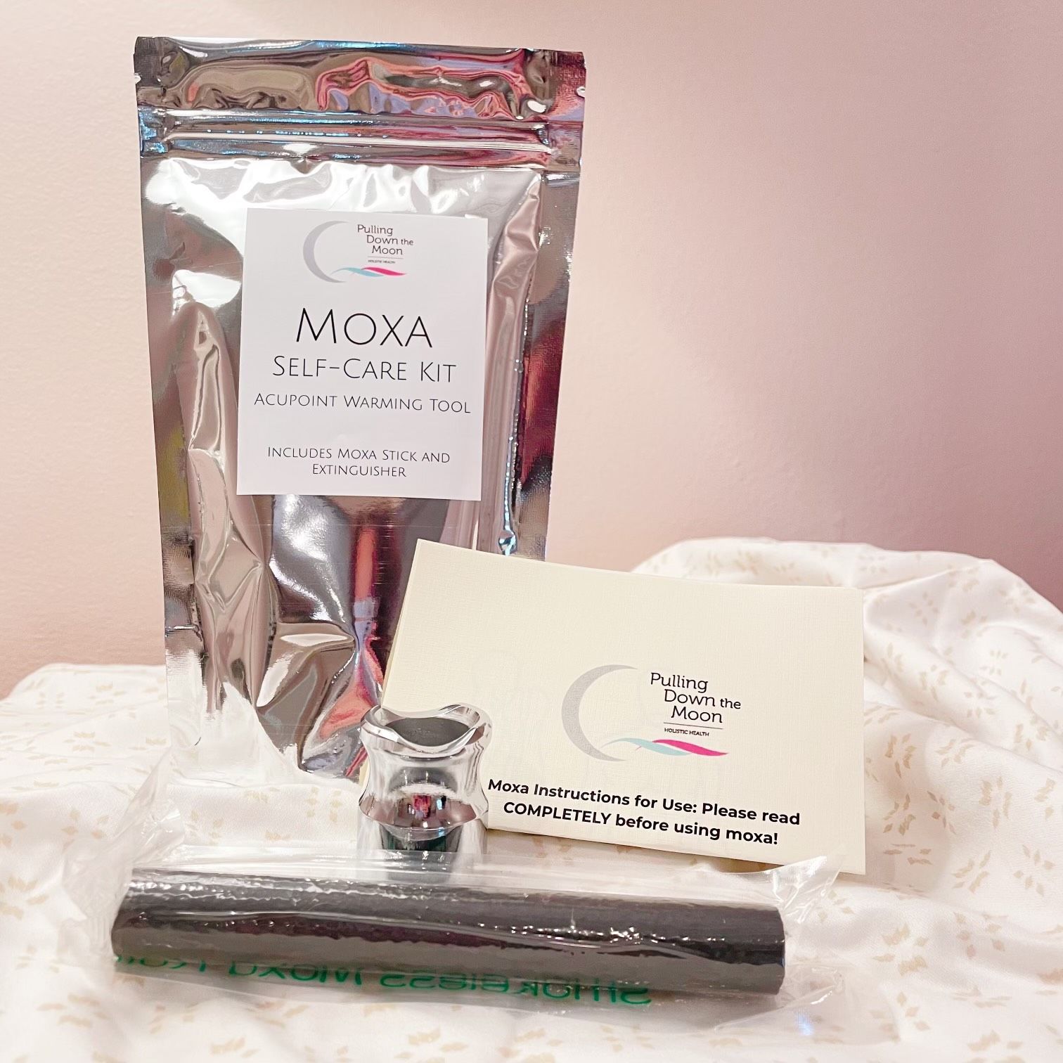 1 premium smokeless Moxa stick • 1 Snuffer crafted for safety & convenience • Step-by-step instructions. Add this essential Traditional Chinese Medicine practice to your self-care routine!